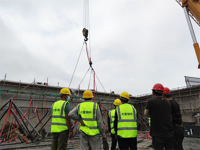 6.为确保.南充加油站球形网架安装顺利,应有详细的南充施工组织设计。网架安装必须保证结构的稳定性和不产生的附加变形。